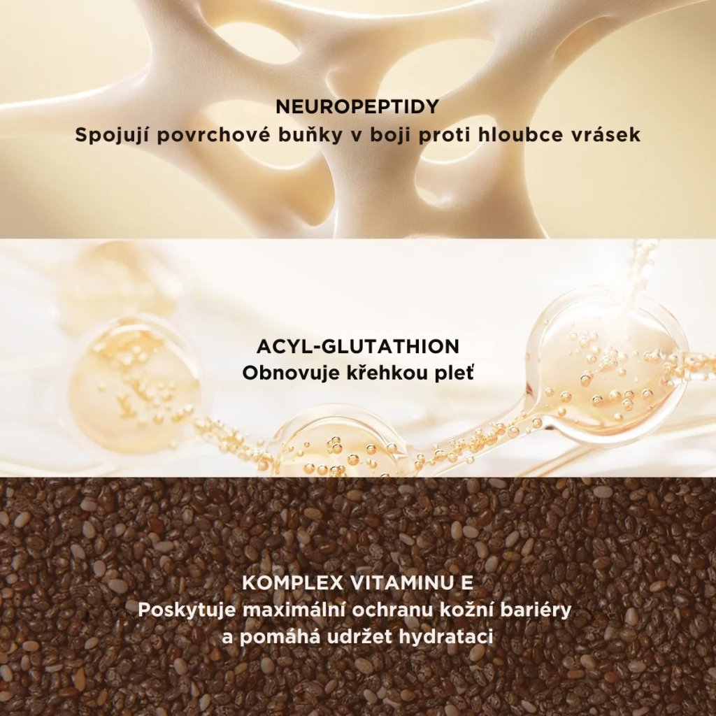 Pomáhá chránit pleť před oxidačním stresem a podporuje mladistvější a vitálnější vzhled pokožky. - NEUROPEPTIDY – Anti-age technologie i v čisticím kroku.