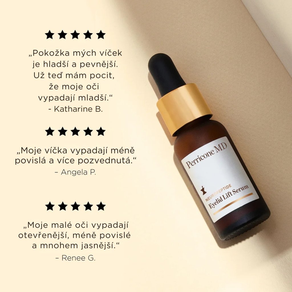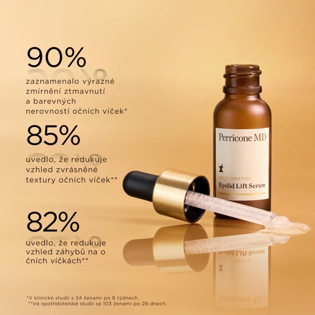 Perricone MD Neuropeptide Liftingové oční sérum je cílená péče o jemné oční okolí pro všechny typy pleti. Toto ultralehké sérum s tekutou, rychle vstřebatelnou texturou pomáhá vyhlazovat rýhy na víčkách, ztenčenou strukturu pleti i nerovnoměrný povrch a zároveň viditelně redukovat vzhled pokleslých víček. Oční okolí působí po použití pevněji, hladčeji a svěžeji.