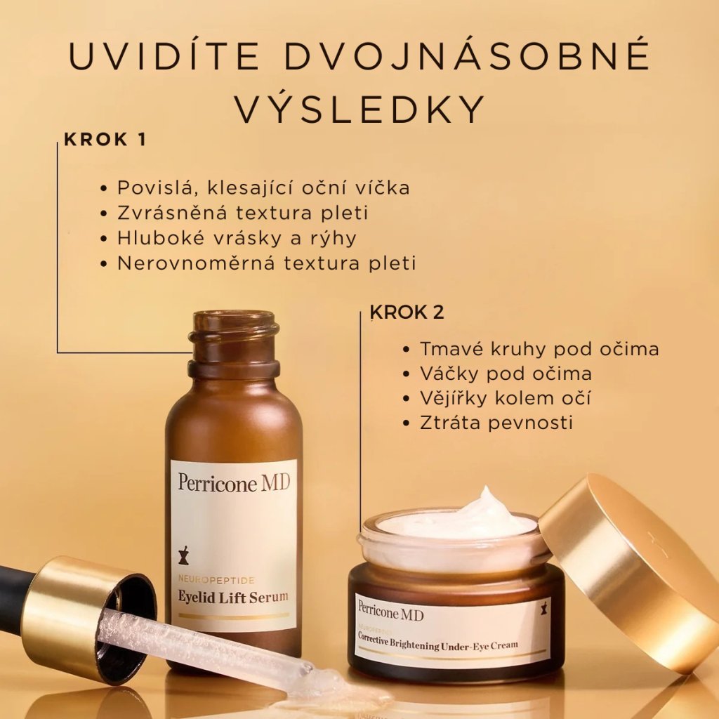 Perricone MD Neuropeptide Zpevňující a rozjasňující oční krém proti vráskám je cílená péče o oční okolí pro všechny typy pleti. Tento bohatý, hedvábný krém pomáhá korigovat vzhled výrazných tmavých kruhů, váčků pod očima a vějířkových vrásek, zatímco podporuje hladší, pevnější a viditelně projasněný vzhled citlivé pokožky v oblasti očí.