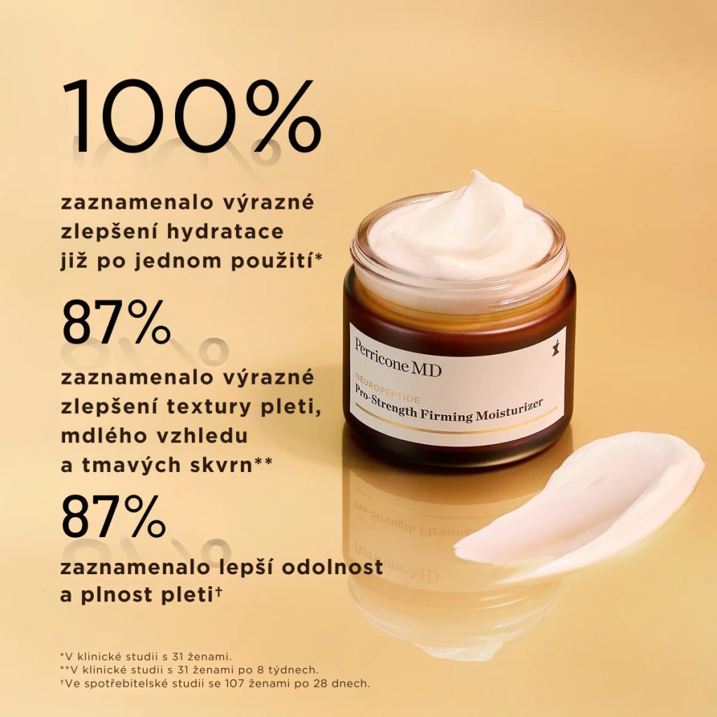 Perricone MD Neuropeptide Zpevňující hydratační krém proti vráskám je cílená anti-age péče pro všechny typy pleti, zejména pro pleť tenkou, křehkou, povadlou a se ztrátou pružnosti. Bohatá, ale komfortní textura pomáhá intenzivně vyživovat, doplňovat a posilovat pleť, podporuje její hydrataci a přispívá k plnějšímu, pevnějšímu a odolnějšímu vzhledu bez pocitu zatížení.